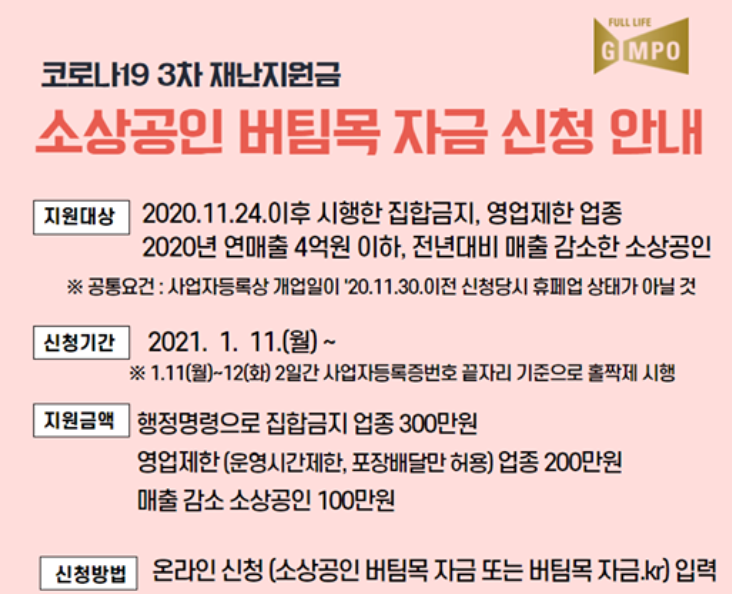 3차 재난지원금(소상공인 버팀목자금) 신청방법