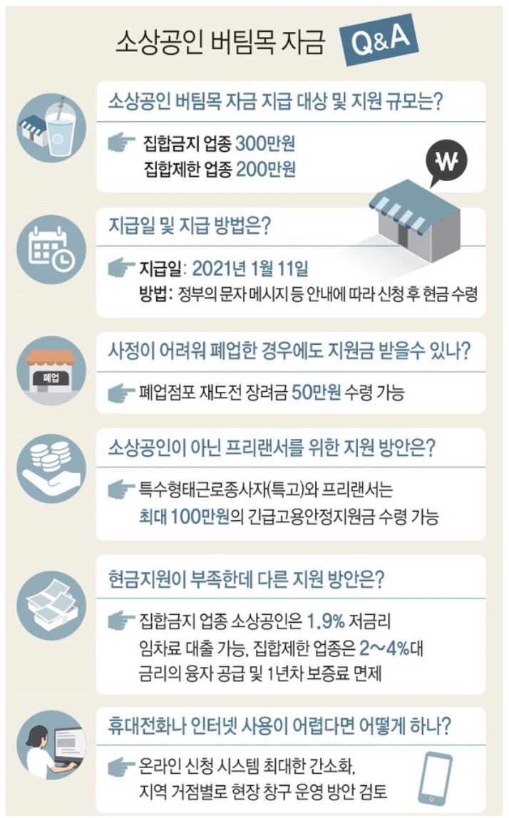 1월 11일 부터 3차재난지원금(소상공인 버팀목자금) 신청이 시작되었습니다. 코로나19로인해 사회적거리두기로 피해를 입은 소상공인을 위해서 정부에서 지원하는 지원금인데요. 소상공인들이 경제적으로 피해을 많이 입은상황에서 작은돈이지만 작은 도움이 되었으면 하는 바람에 정부에서 지원합니다.