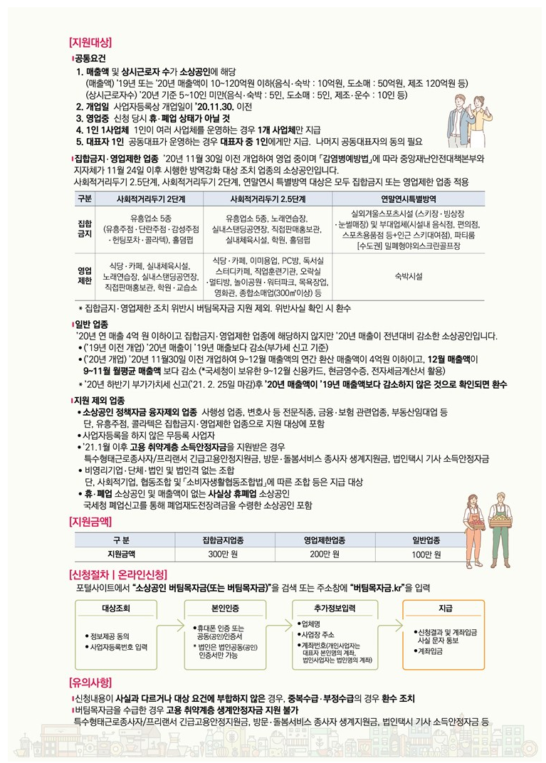 소상공인 버팀목자금 홈페이지에서 온라인으로 신청가능